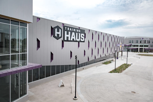 Located on the former Northwest Airlines Headquarters site, the Vikings’ new headquarters includes 277,000 gross square feet of office and training facilities, four outdoor practice fields and an indoor practice facility, featuring an 100-yard indoor field and 95-foot clear height on the interior. Other player and staff amenities include 6.500-square-foot locker room that is complete with fire places and big screen TV, 6,145-square-foot weight room, cryotherapy and hydrotherapy center, a one-of-a-kind draft room, nutrition bar and Vikings Entertainment Network studio. A 6,000-seat stadium can accommodate a variety of community events, including Vikings’ scrimmages, local high school game and entertainment such as concerts.